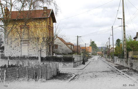 Photimages, dans sa composition sur la rue Hamelin de Franconville (Val d’Oise), associe une moitié de la carte ancienne avec une moitié de la photo récente.
