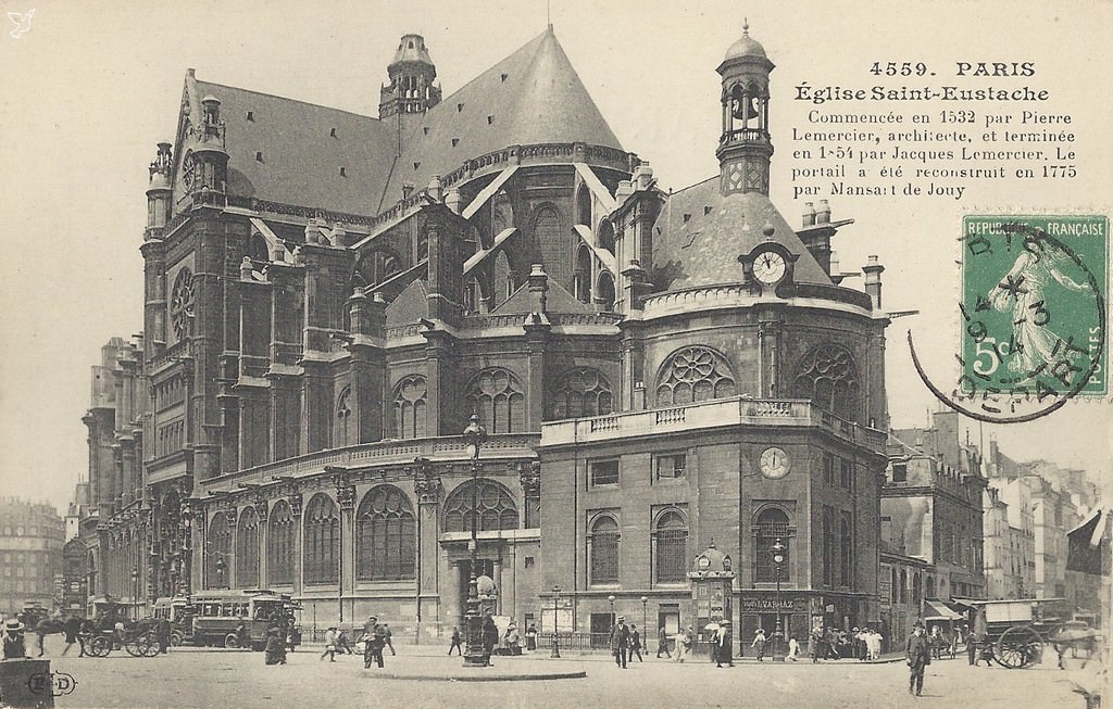 La paroisse de Saint-Eustache a été créée en 1223. L'Eglise maintes fois remaniée, a été reconstruite au XVIIIème siècle. L'architecte en fut Jean Hardouin-Mansart, petit-fils du grand architecte de Louis XIV Jules Hardouin-Mansart.