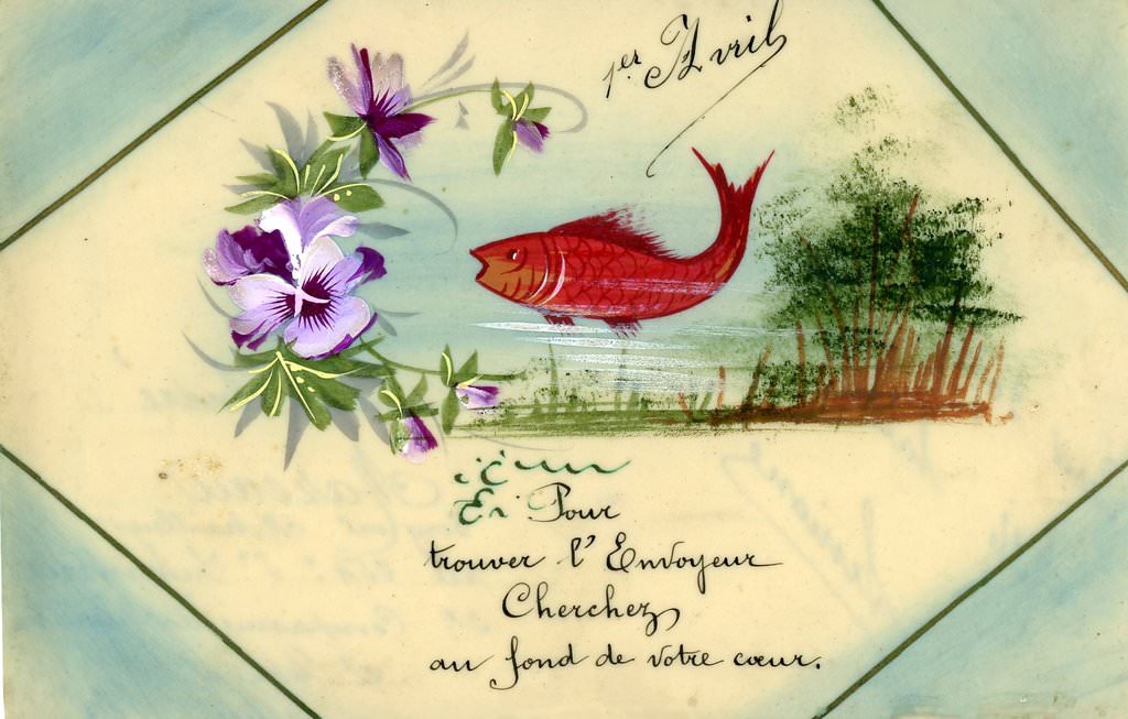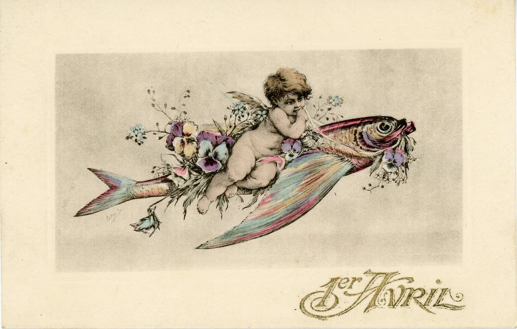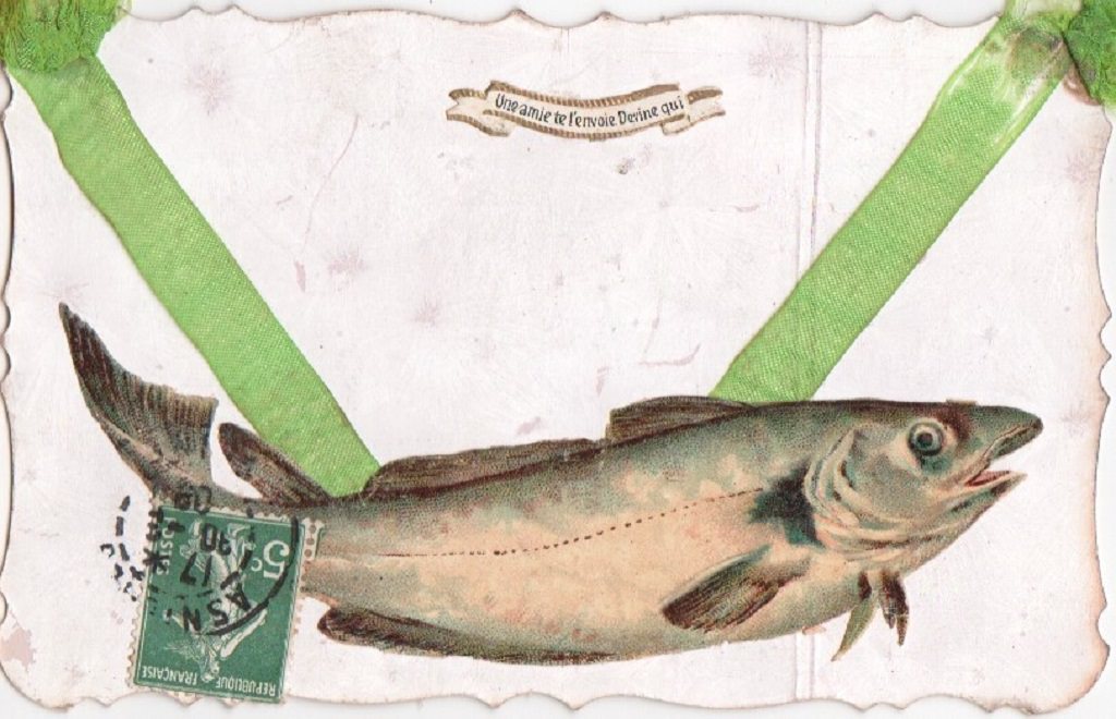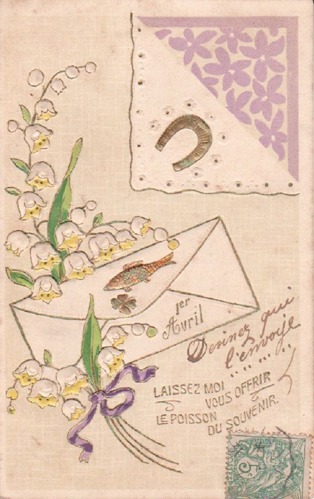 1er AVRIL De mes meilleurs voeux, de poissons, Pour vous j'ai garni ma corbeille ; Qu'avec Avril, plein de chansons, L'Amour en votre coeur s'éveille !