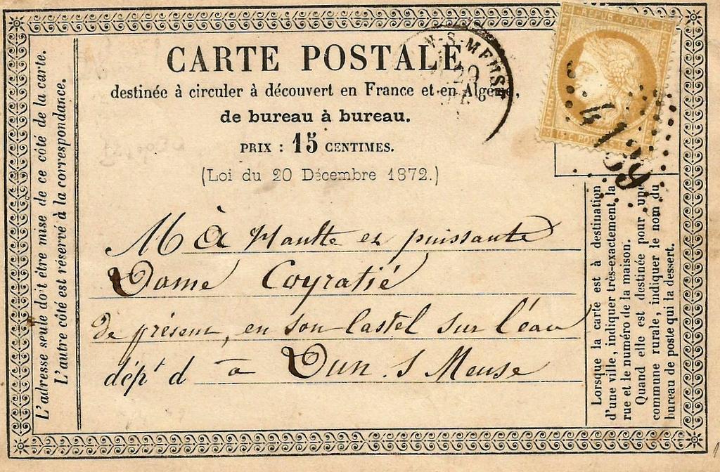 Re: Carte Postale Précurseur - 1876