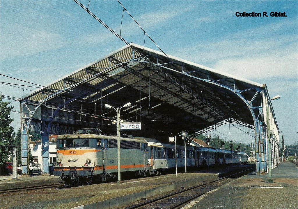 1394 - Tracté par la BB 9322, un T.E.R Tarbes - Dax, marque l'arrêt en gare de PUYOO (Basses-Pyrénées) en Juin 2001.