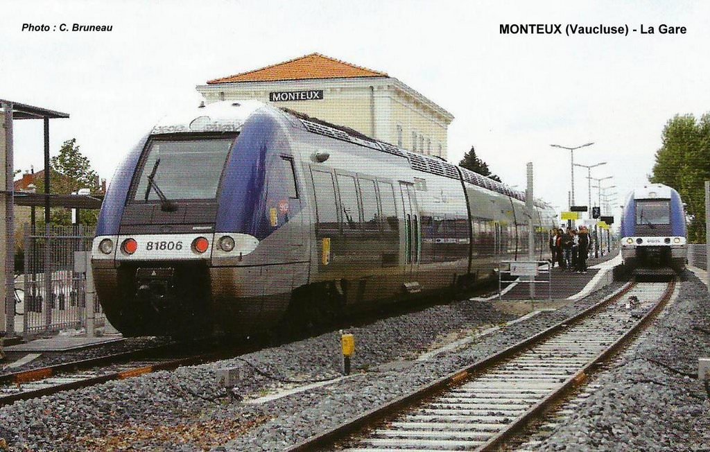 MONTEUX (Vaucluse) - Croisement de deux rames B 81 000, le jour de la réouverture de la ligne Sorgues-Carpentras.