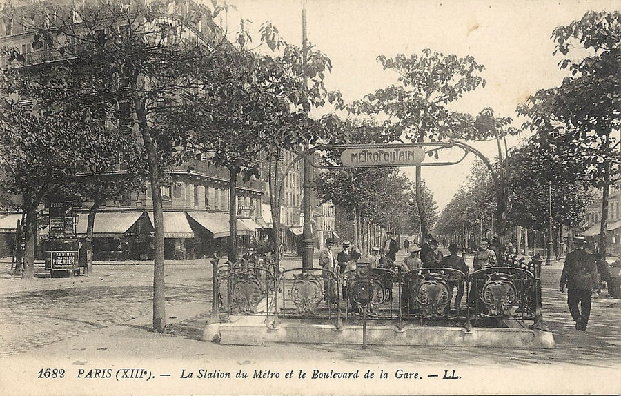 Le cliché de cette ultime carte illustrant la ligne 7bis provient de la collection de Jean-Pierre Rigouard et a été présentée par Dominique1594 le 7 Septembre 2010 dans la collection du Métro, à voir ou revoir ici : Métropolitain - Métro Paris - Station Danube. Nous sommes maintenant arrivés à la fin de la boucle et la voie unique va bientôt retrouver la voie montante peu avant la station Botzaris. On a donné à la place, créée en 1875, de ce quartier excentré de l'ancienne commune de Belleville le nom du fleuve d'Europe continentale. A l'époque cette place donnait accès à la compagnie des marchés aux chevaux et à fourrages. Sur ce cliché on découvre l'accès Guimard à écussons et fond carré installé en 1911 au pied de l'entrée de l'hôpital Hérold. Comme souvent le photographe a rassemblé de nombreux badauds, ravis de prendre la pose quelques instants.