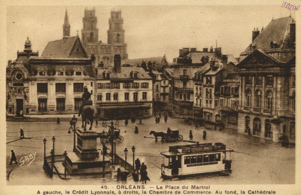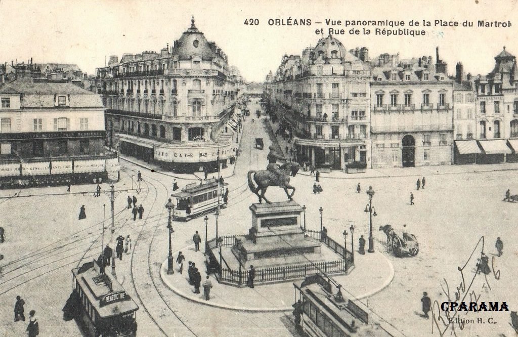 ORLEANS - Vue panoramique de la Place du MartroI et Rue de la République