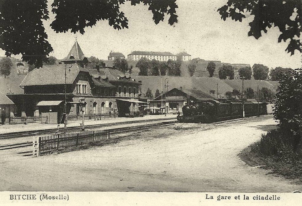 BITCHE (Moselle) - La Gare, le Train et la Citadelle.