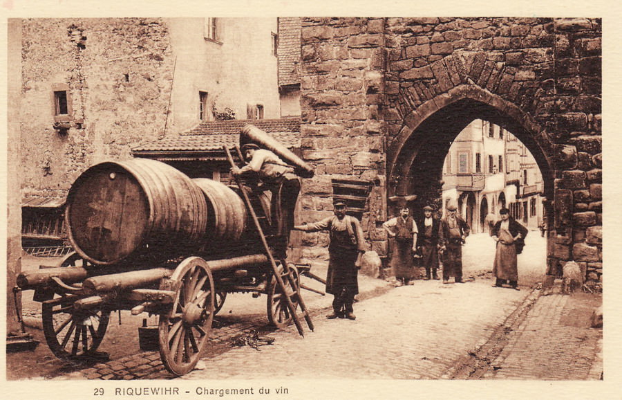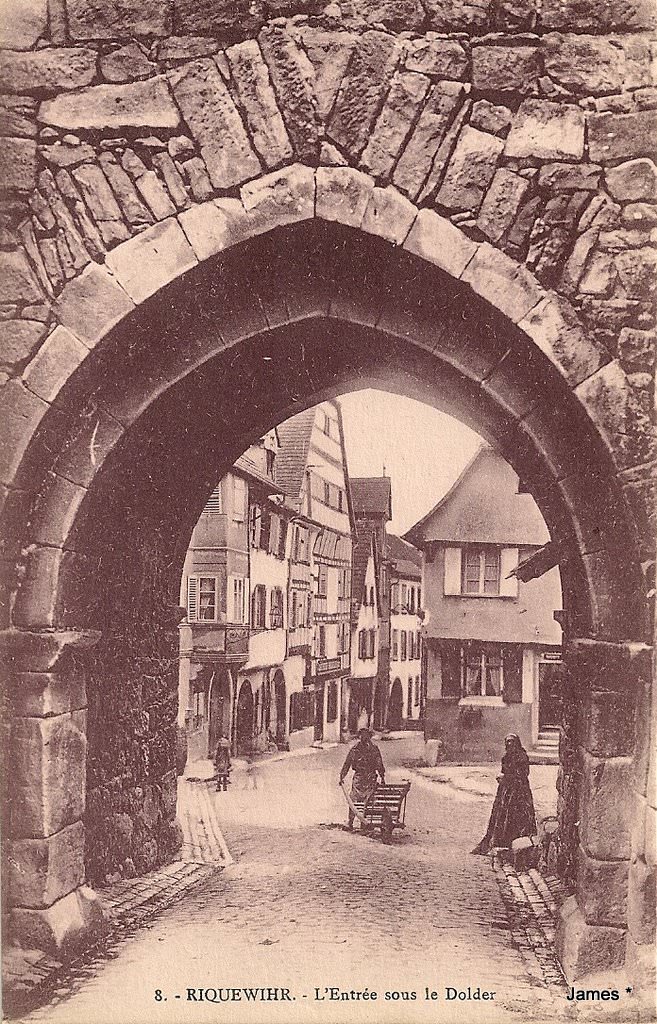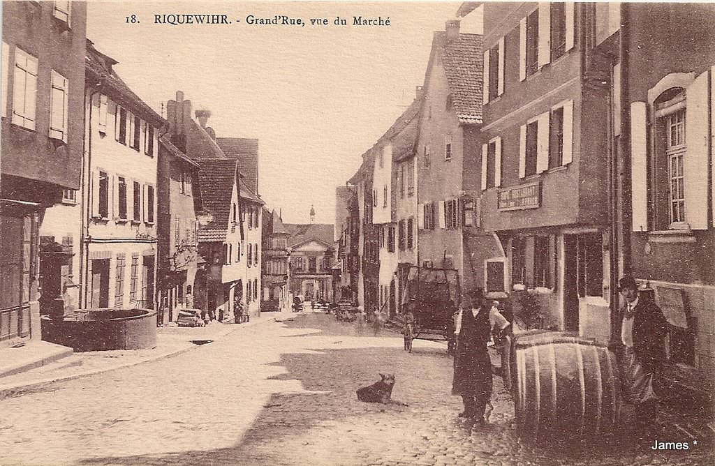 7. .RIQUEWIHR - La Cour des Juifs dif. de celle de Tramontane : une charrette à la place de la Charrue et q.q. personnages