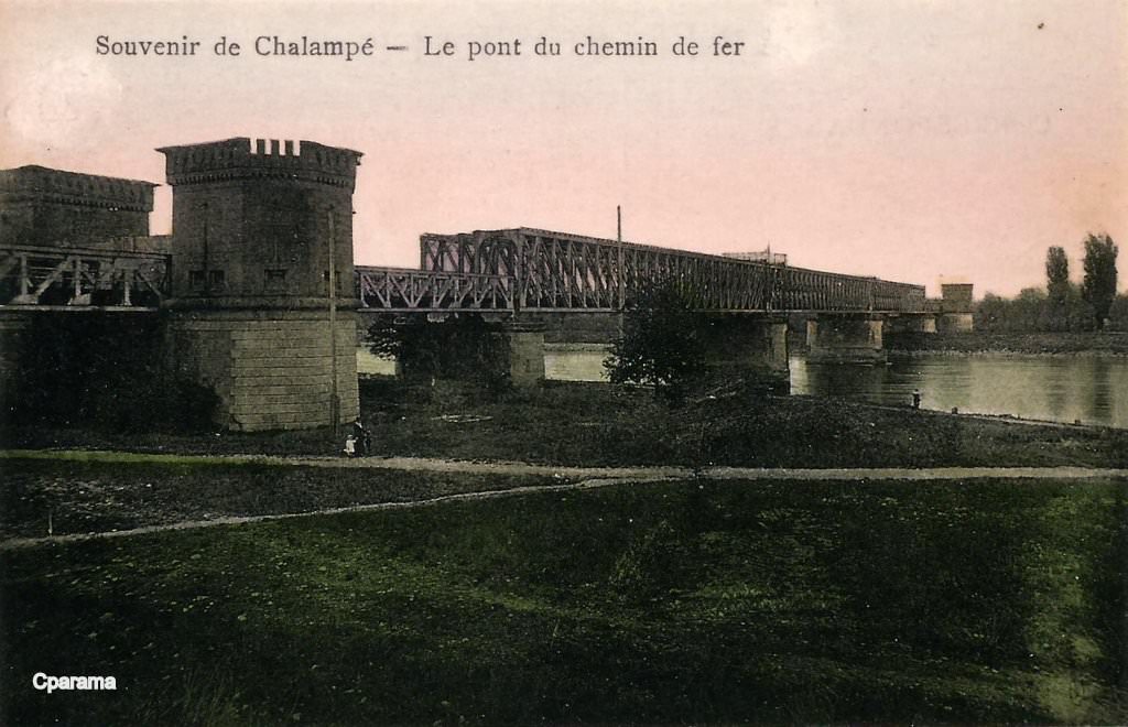 Souvenir de CHALAMPE (Haut-Rhin) - Le Rhin et le Pont de Chemin de fer.