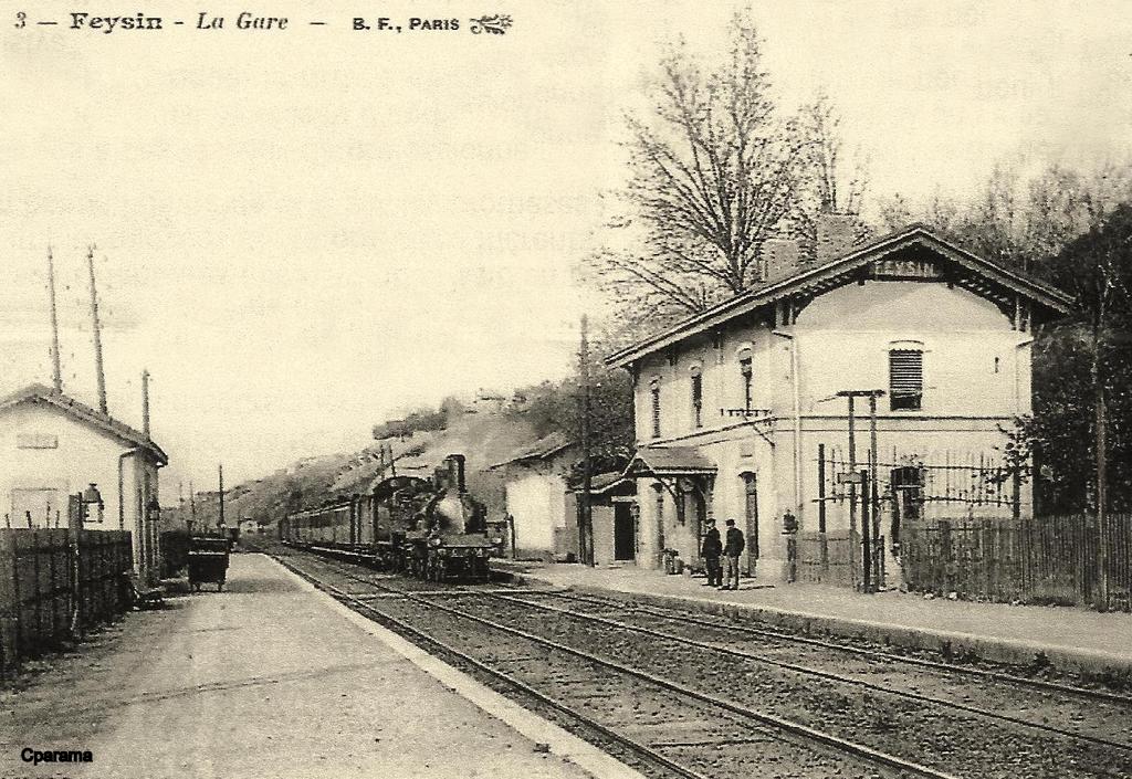 3 - FEYSIN (Rhône) - Vue intérieure de la gare, arrivée d'un train.