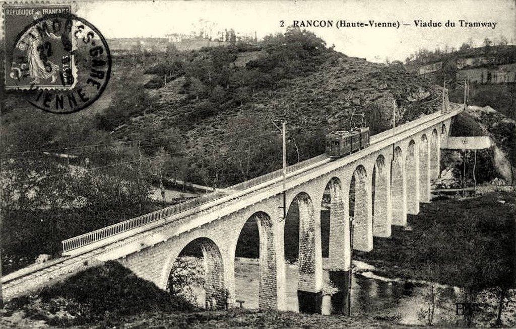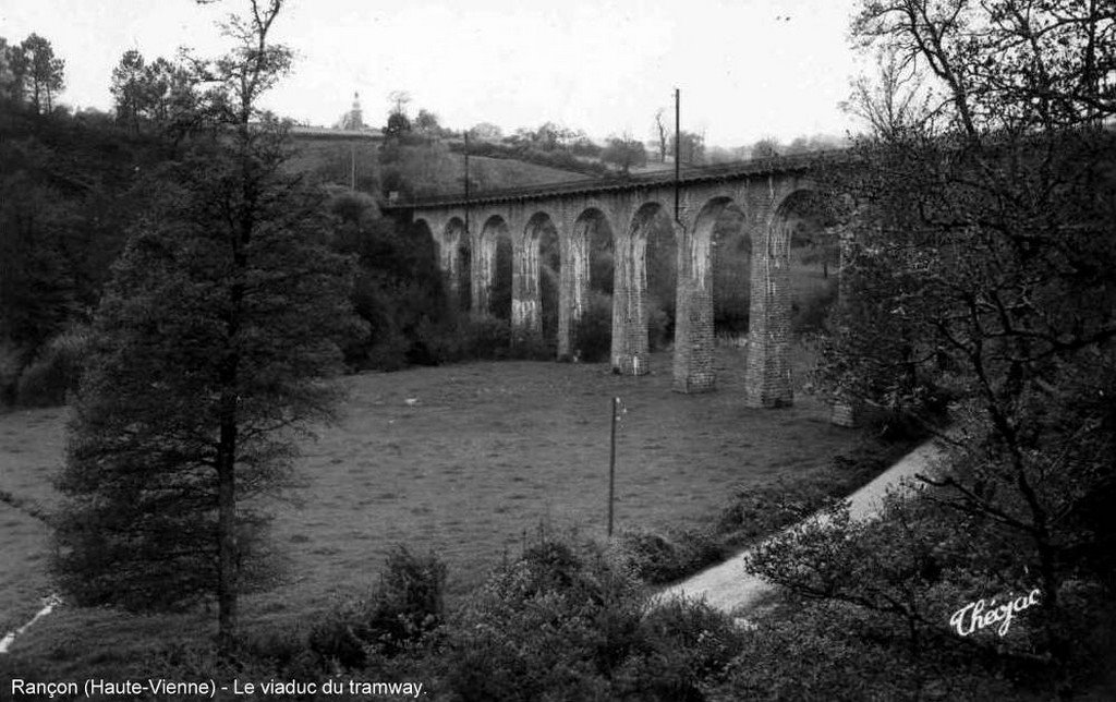 Rançon est un village du département de la Haute-Vienne à 10 kilomètres à l'Est de Bellac. Sa population était jadis (1914) de 1705 habitants, contre 494 lors du recensement de 2017. La gare, ci-dessus, était desservie par les tramways électrique de la C.D.H.V. (Compagnie des Chemins de fer Départementaux de la Haute-Vienne). La station était située sur la ligne reliant Limoges à Saint-Sulpice les Vignes, longue de 80 km. au point kilométrique 45. Cette ligne fut mise en service entre 1912 et 1913 et fermera, malheureusement, en 1949, victime, là aussi, de la concurrence routière.