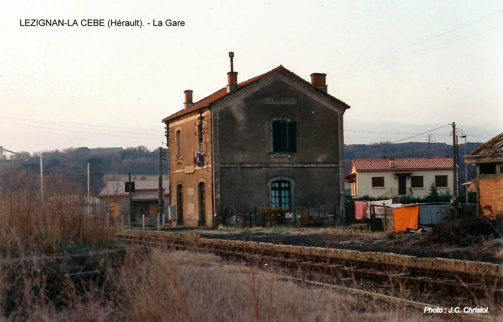 Ligne Vias-Lodève - La gare de LEZIGNAN-La CEBE (Hérault) en Novembre 1997 - Photo : J.C. Christol.