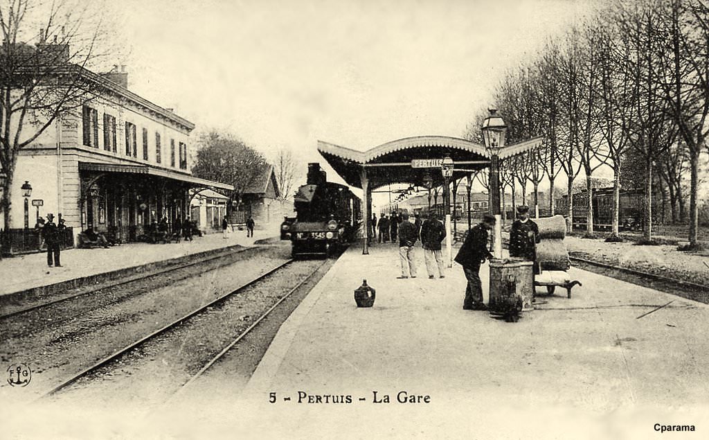 5 - PERTUIS (Vaucluse) - Intérieur de la gare et le train - Editeur : F.G.