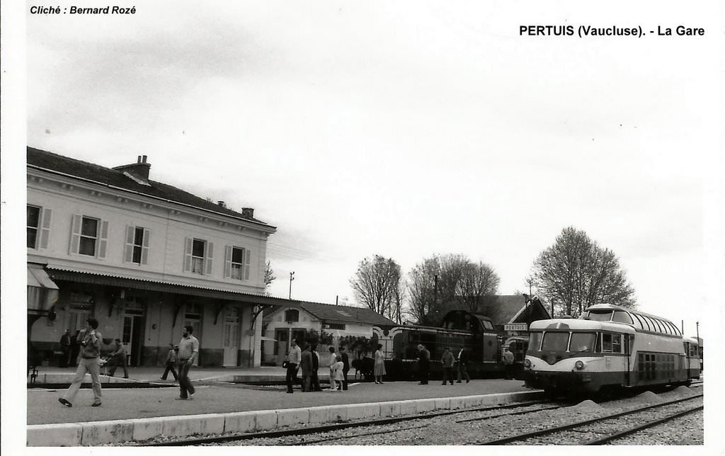 PERTUIS (Vaucluse) - La gare et l'autorail "Panoramique" en 1983 - Cliché : Bernard Rozé.