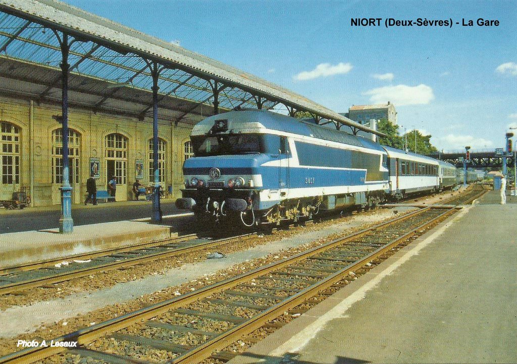 NIORT (Deux-Sèvres) - Ligne de Poitiers à La Rochelle - Train "Corail" tracté par la CC 72018 entrant en gare.