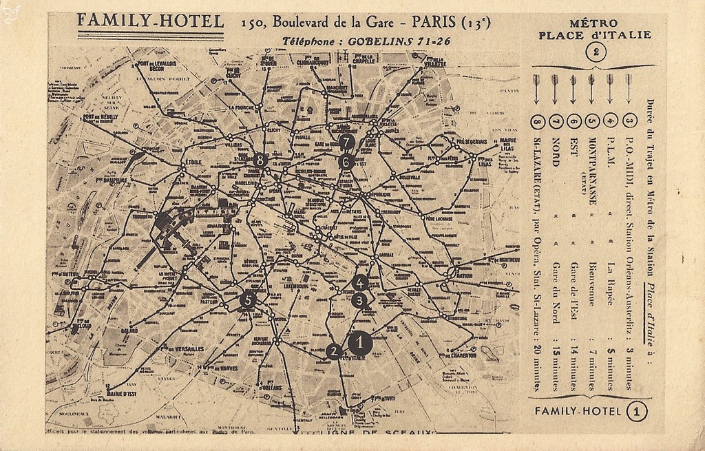 Plutôt anecdotique en ce qui concerne ce plan quasi illisible, voici une publicité du propriétaire du FAMILY-HOTEL, Mr Depardieu.