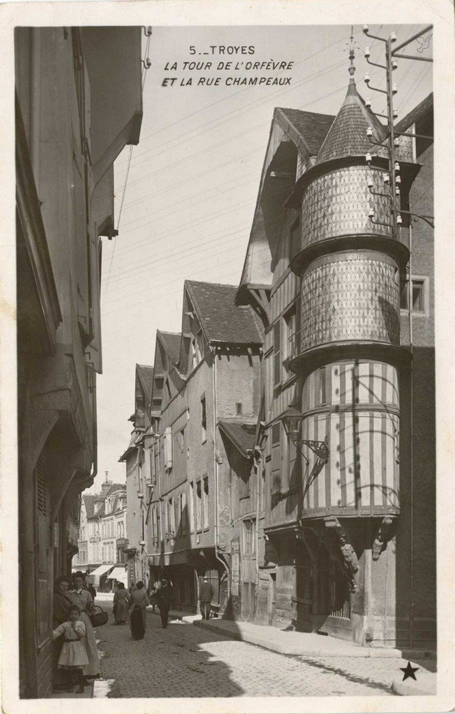 5.- TROYES - LA TOUR DE L'ORFÈVRE ET LA RUE CHAMPEAUX