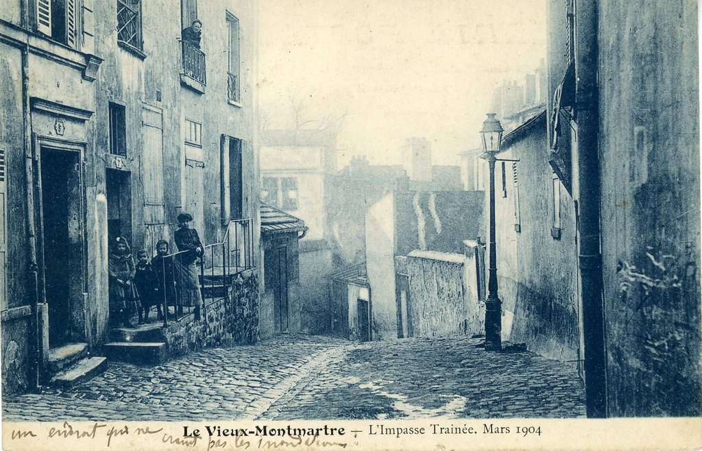Commentaire : l'Impasse Trainée s'appelle depuis 1968 la rue Poulbot, en l'honneur de l'illustrateur Francisque Poulbot