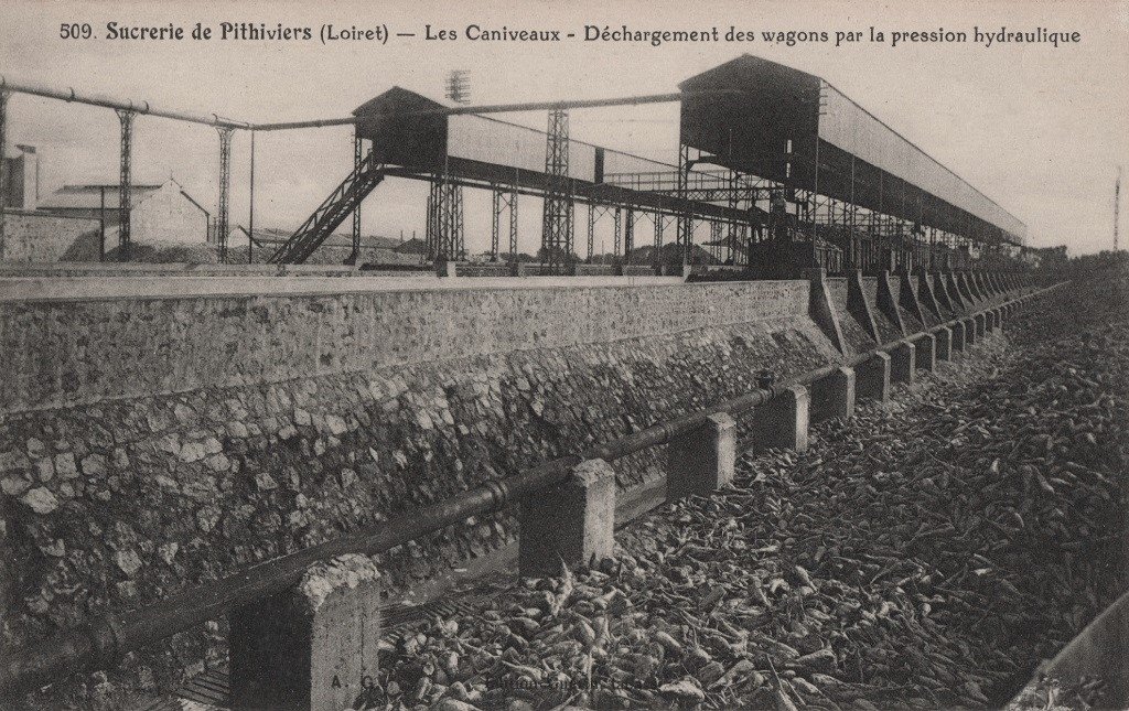 SUCRERIE DE PITHIVIERS - 509 - Les caniveaux - Déchargement des wagons par la pression hydraulique.