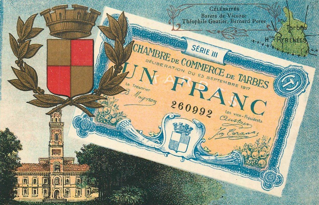 au dos : Formé en 1790 du Bigorre et de quatre pays faisant partie de la Gascogne, Le Bigorre après de nombreuses secousses politiques fut rattaché à la couronne en 1606.