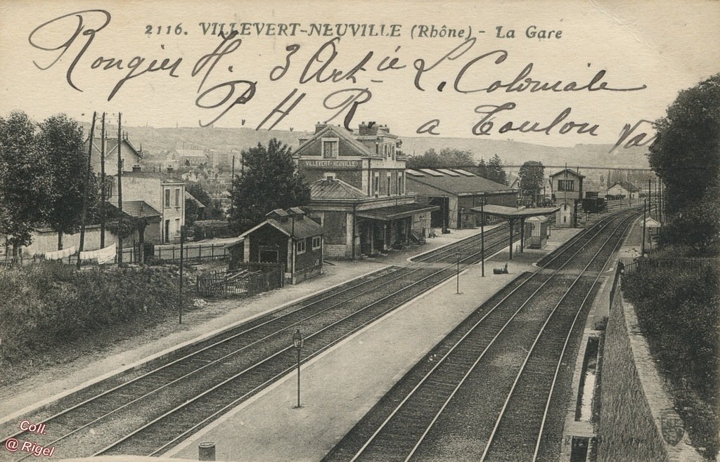 La gare de Villevert-Neuville est une ancienne gare du PLM établie sur la ligne Paris-Lyon (aujourd'hui de la SNCF) et située à 15 km au Nord de Lyon. Elle porte le nom de Villevert (où elle est construite) et Neuville sur Saône, qui lui fait face. Les deux localité sont reliées par un pont suspendu sur la Saône, qui a été remplacé par un ouvrage en béton composé de trois arches (nombreuses cartes sur les deux ponts). Voir sur notre site, les cartes de Neuville sur Saône.