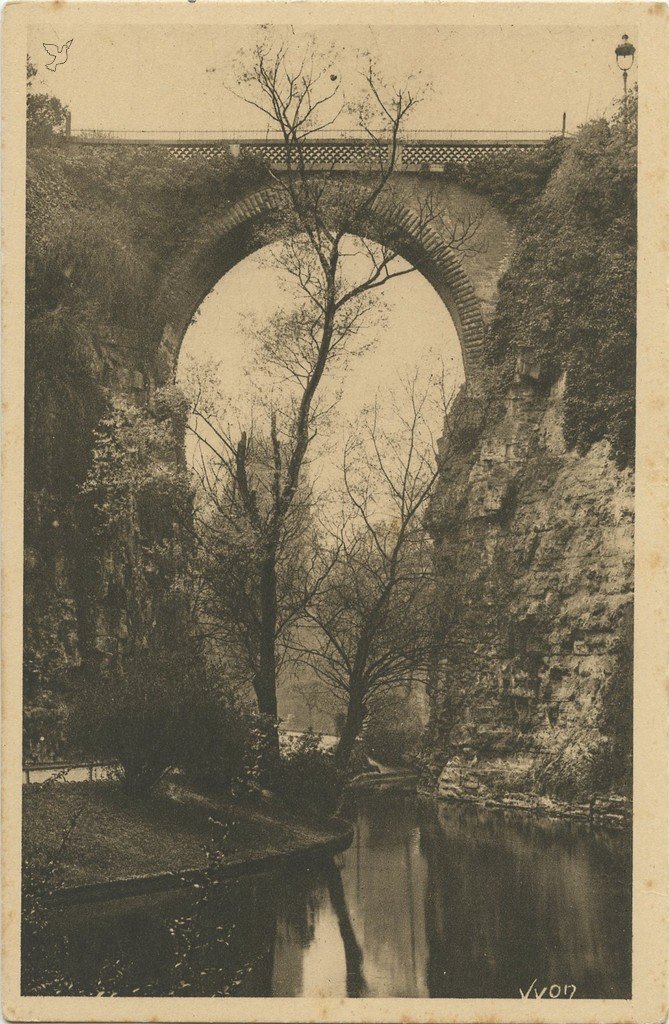 Paris Les Buttes-Chaumont - Le Pont de briques (cliché Rigouard, Cparama)