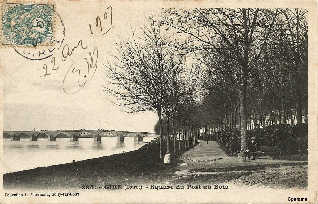 394 - GIEN (Loiret) - Square du Port au Bois - Editeur : L. Marchand à Sully-sur-Loire.