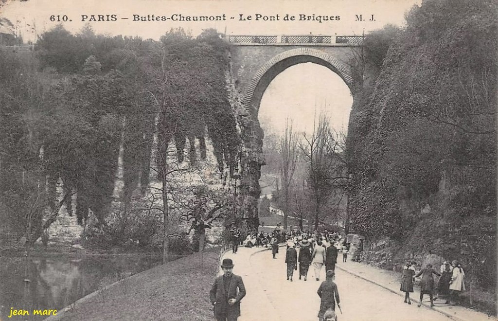Paris Les Buttes-Chaumont - Le Pont de briques (cliché Rigouard, Cparama)
