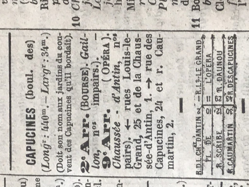 Le Bd des Capucines comporte peu de n°s du côté pair comme le montre ce cliché qui présente les intersections successives.
