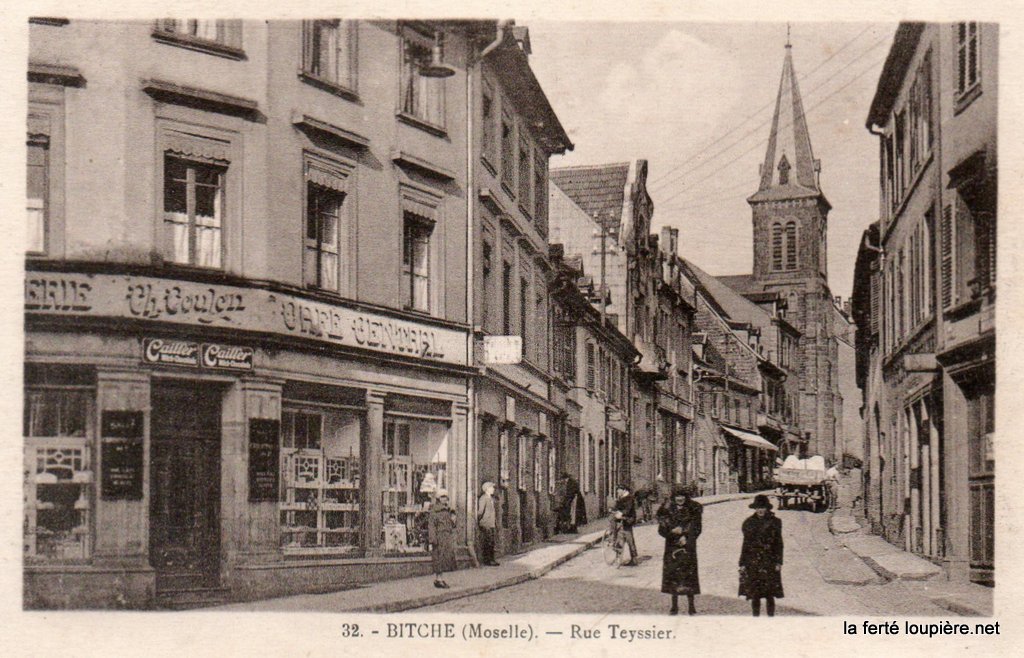 Cette page présente une série de cartes postales anciennes de la Rue Teyssier à Bitche dans la Moselle.