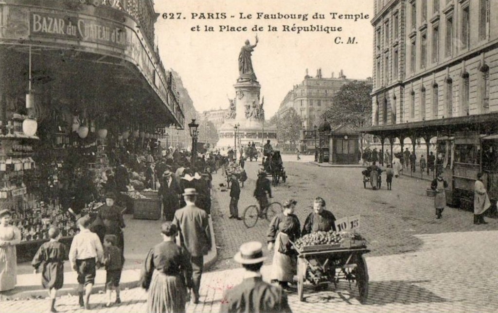 Société des Magasins-Réunis, au capital de 20 millions de francs. Jacob Alexandre (1804-1876) et son fils Edouard Alexandre (1824-1888) ont préalablement acheté auprès de la Ville de Paris, les terrains circonscrits entre la rue du faubourg du Temple, la rue de Malte, le boulevard des Amandiers (avenue de la République) et la place du Château d’Eau. Les Alexandre sont secondés par huit administrateurs, dont un banquier.