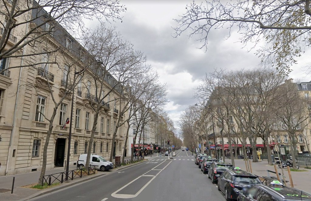 Située avenue des Champs-Elysées Le premier bâtiment visible à droite devrait être le n° 44 Champs Elysées, dont le rez-de-chaussée est occupé aujourd’hui par Disney et Zara.