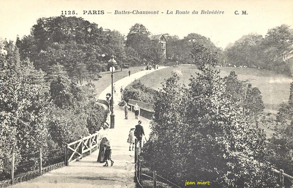 On termine les travaux de la seconde butte, celle qui vient ensuite en s'avançant du côté des Prés-Saint-Gervais. Les immenses travaux de la cascade imitant celle de Tivoli et ses grottes, sont terminés. Le lac est prêt à recevoir l'eau. Les grandes allées carrossables sont pavées. Les pavillons des gardes sont sur le point d’être terminés. Pn pose les grilles d'entourage, car ce beau parc sera fermé la nuit. (quotidien Le Petit Journal 19 juin 1866)