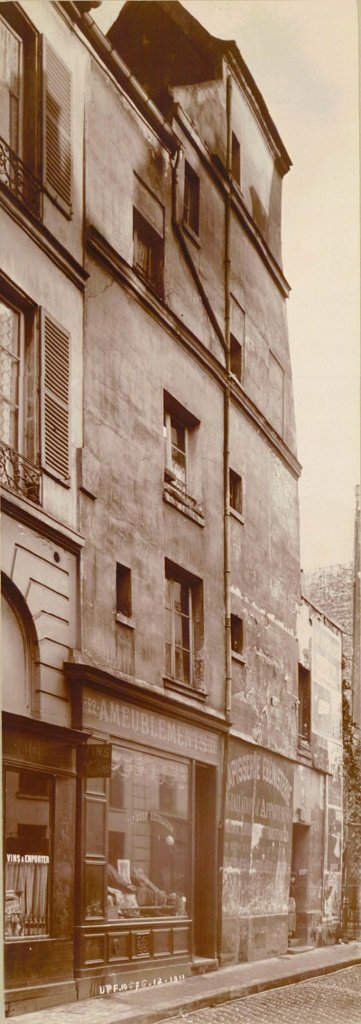 Cette maison bancale à pignon, à l’allure de tour de garde, a décidément attiré les photographes : Eugène Atget s’y est attelé en 1901 ► voir ici, mais également Emmanuel Pottier en 1905 ou encore l’architecte voyer en chef de la ville de Paris en 1911. ► voir ici