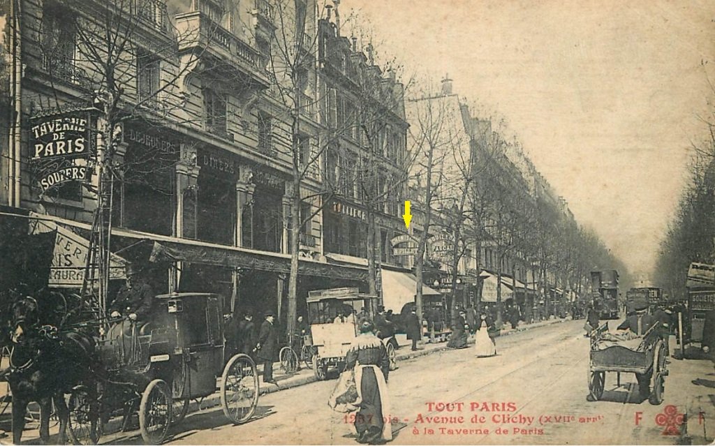 ► voir ici succursale Chemiserie Pillet 5 avenue de Clichy, entre la Taverne de Paris et le Bouillon de Pascal