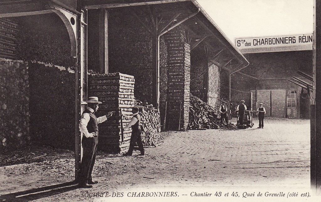 SOCIÉTÉ DES CHARBONNIERS. - Chantier 43 et 45, Quai de Grenelle (côté nord). - L’Empilage des Bûches