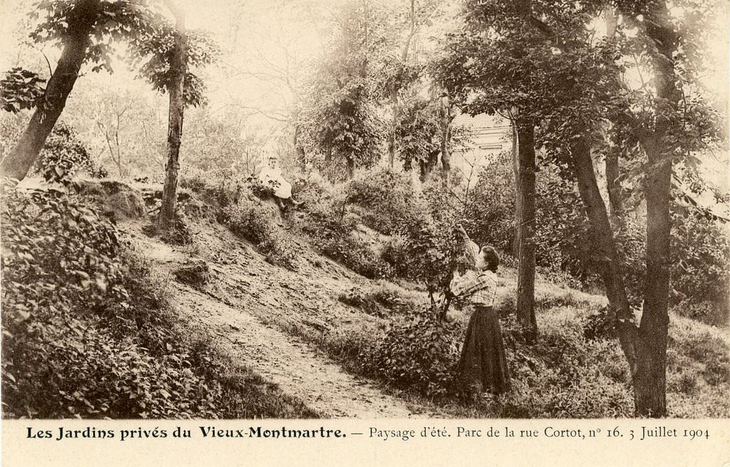 Les Jardins privés du Vieux-Montmartre. — Paysage d'été. Parc de la rue Cortot, n°16. 3 juillet 1904