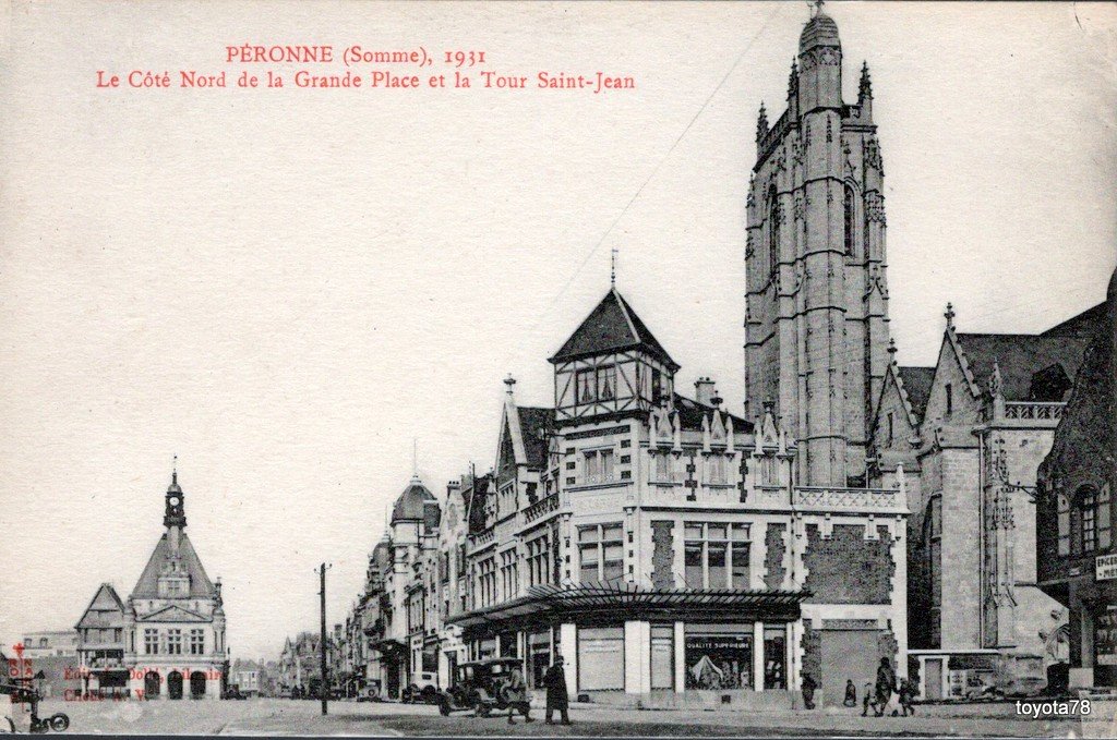 PÉRONNE (Somme) 1931 - Le Côté Nord de la Grande Place et la Tour Saint-Jean.