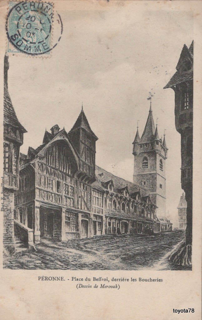 PÉRONNE - Place du Beffroi, derrière les Boucheries (Dessin de Merovak)