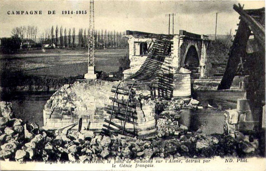 Le Pont de SOISSONS sur AISNE détruit par le Génie français.