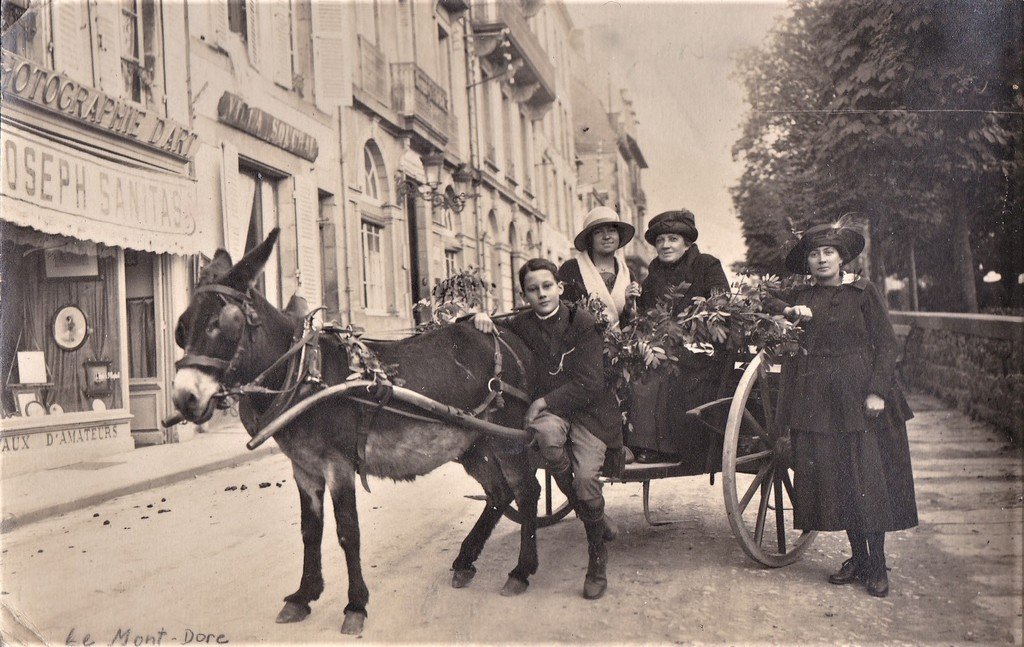 Attelage d'âne devant le magasin de photographie d'art Joseph Sanitas : allée d' Allonville