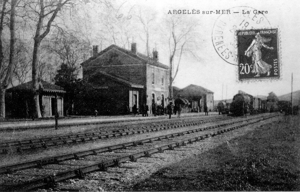 ARGELES sur MER (Pyrénées-Orientales) - La gare et le train.
