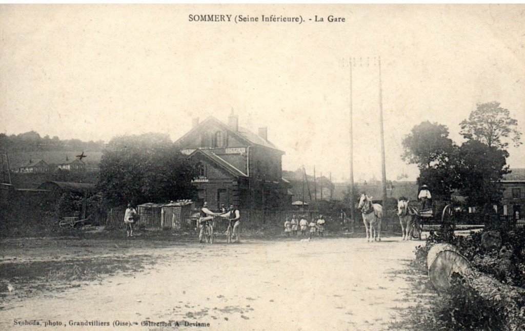 SOMMERY (Seine-Inférieure) - La cour de la gare - Editeur : Lebon.