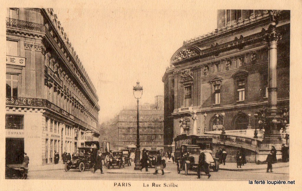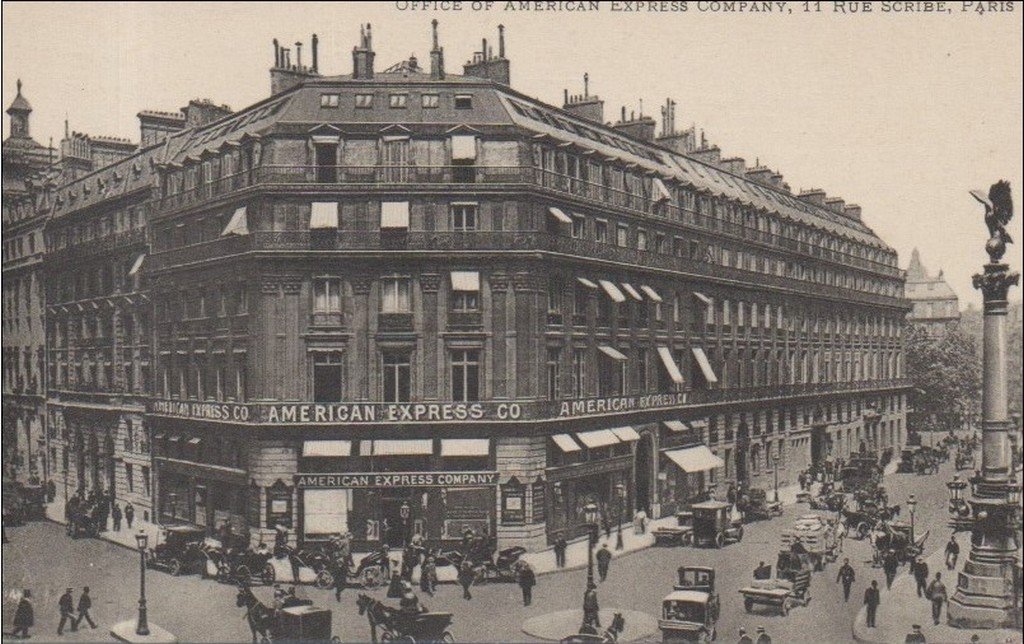 Carte-publicitaire THE CUNARD CORNER IN PARIS ► La "Cunard Line Agency" se trouvait 6, rue Scribe, l'immeuble du Grand-Hôtel. Cette carte en 9x14 nous montre aussi la Rue Auber