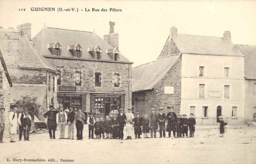 Pierre Bertin, horloger-photographe-éditeur, né en 1862, est installé dès avant octobre 1902, au n°11 bis rue des Piliers, faisant face à l’église de Guignen.