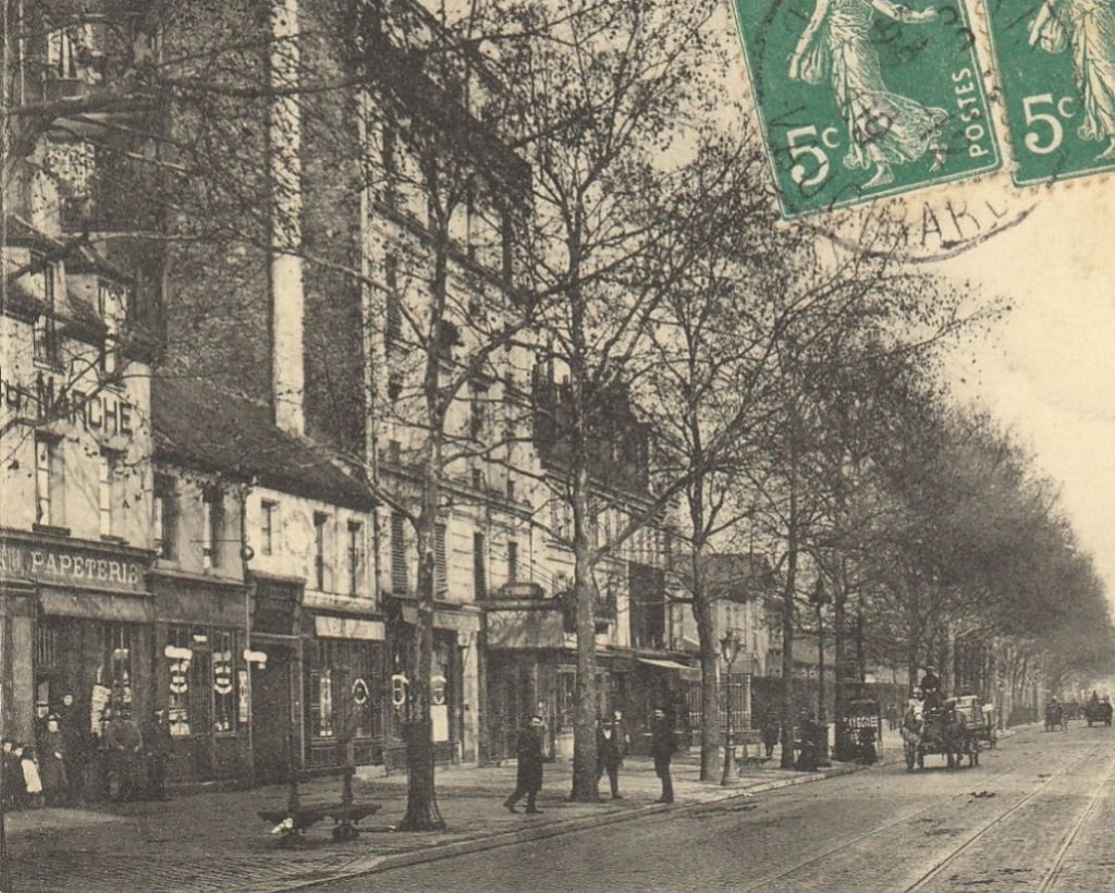 Ca n’a pas été aisé de localiser cet emplacement de la rue d’Allemagne, devenue avenue Jean-Jaurès à compter de 1914, qui, avec ses 214 numéros, n’est pas la plus courte des voies parisiennes. C’est grâce à un cliché, pris en sens inverse, où figure lisiblement une librairie-papeterie au rez-de-chaussée d’un bâtiment qui nous semblait être un « hôtel » du Marché ► voir ici le même emplacement de la rue d’Allemagne pris à contresens, que nous avons pu enfin repérer cet endroit exactement.