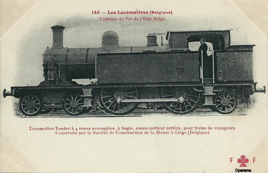 148 - Locomotive-tender, type 221 pour trains de voyageurs, construite par la Société de Construction de la Meuse à Liège (Belgique) pour les Chemins de fer de l'Etat Belge - Editeur : F.Fleury.