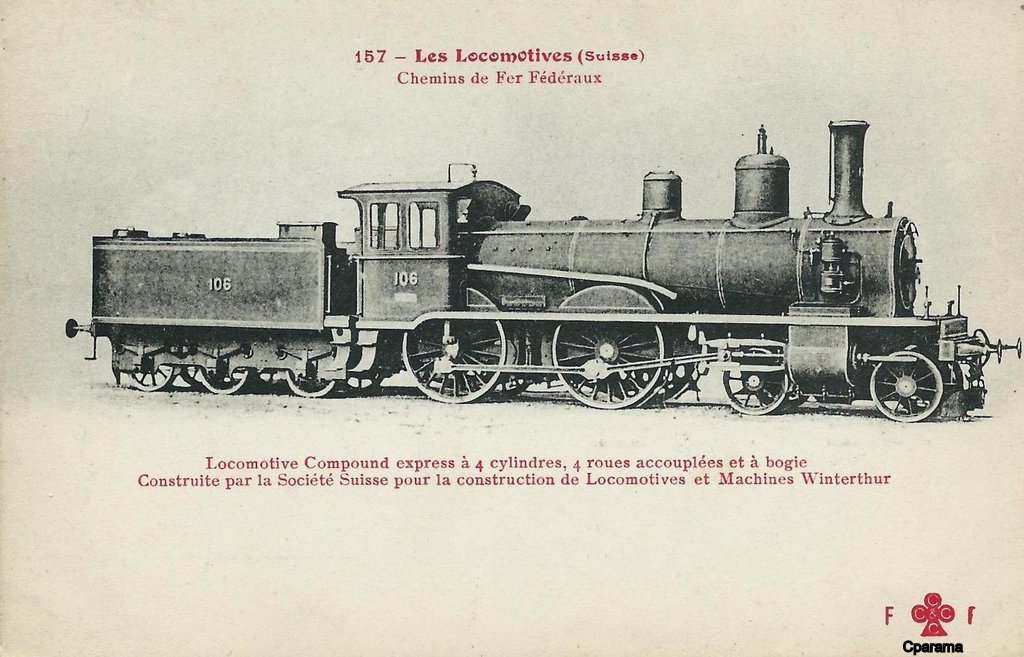 157 - Locomotive n° 106, type 220, construite par la S.L.M.Winterthur pour les Chemins de fer Fédéraux Suisses.