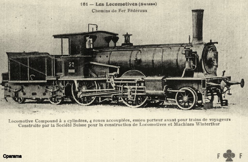 161 - Machine n°52, type 120 pour trains de voyageurs, construite par la S.L.M.Winterthur (Suisse) pour les Chemins de fer Fédéraux Suisses - Editeur : F.Fleury.