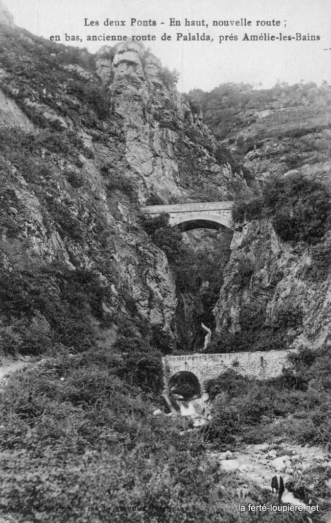 Les deux Ponts - En haut, nouvelle route; en bas, ancienne route de Palada, près Amélie-les-Bains