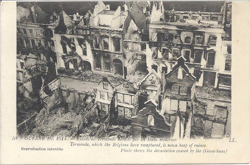(sur un mur intact a droite "Aux Travailleurs - Nouveautes - Confection - Chaussures"