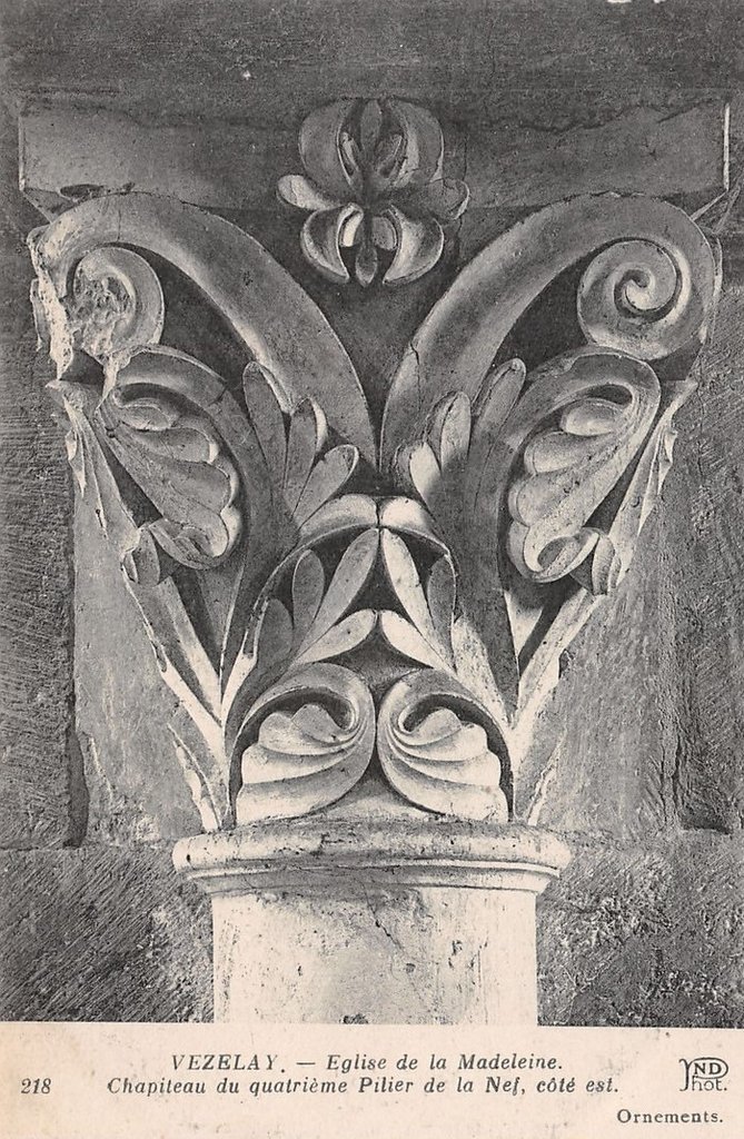 Vézelay -218- Eglise de la Madeleine - Chapiteau du quatrième Pilier de la Nef, côté est - Ornements